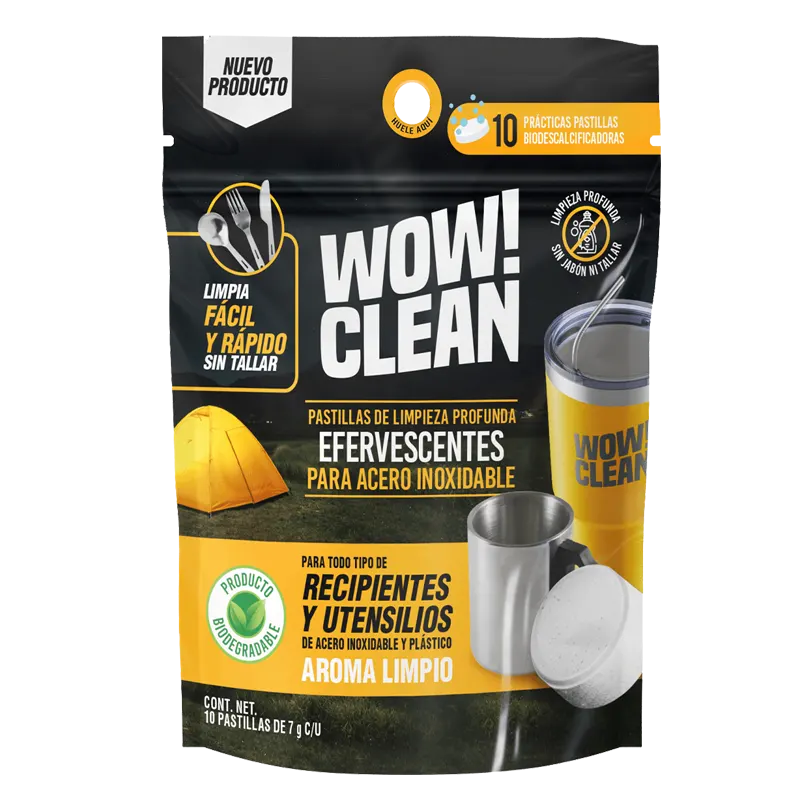 Práctica pastilla efervescente, aromatizante biodegradable de limpieza profunda y desinfección para tus termos. Obtén una experiencia única, instantánea y fácil de usar, solo échalo.